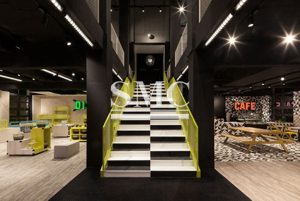 China's first children's design museum, Kids Museum of Glass, has alternating black and white stair treads on its central staircase, earning the nickname "The Piano Staircase".