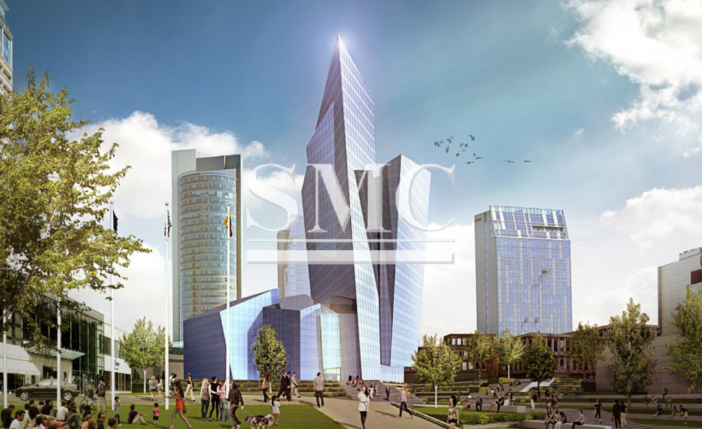 The building’s ground floor hosts public facilities including a restaurant, bar and retail as well as hotel and office lobbies. The geometry creates a unique expression enriching the city skyline and improving its multi-dimensionality. The bold, sculptural design of this multi-faceted glass tower reflects the light,  sky and  surroundings with a play of transparent and opaque surfaces.