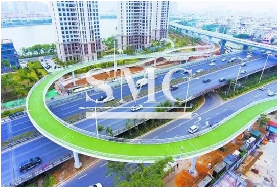 Xiamen, the South-East Chinese city has recently unveiled the longest aerial cycle path in the world. The path is a 4.8m-wide four-lane carriageway stretching for 7.6km with 11 exits connecting to six public transport hubs.