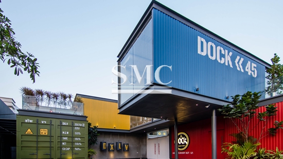 The container-constructed building is located in India, where customers request a nightclub and hope to have a nautical theme, from food to space. Entering the room, the first thing I saw was a 9-meter-long bar that was attached to the dance floor. The stage on the first floor overlooks most of the space, and the folded sheet metal staircase is one of two sets of stairs that take people to the first floor.