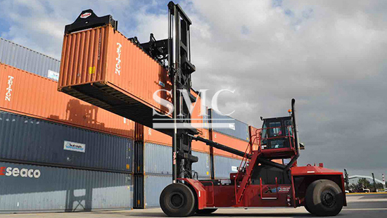 Another type of lifting tool is a large forklift, which is very large and much larger than the warehouse. The forklift has a lifting system on it and a robotic arm that can lift the container and then lift the container to the designated location. In general, a large lifting tool lifts the container down from the spread, and then a forklift transports the containers one by one to the designated place and arranges them neatly.